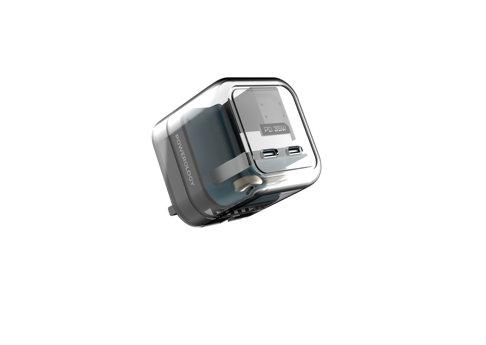 Powerology 35W PD Dual USB-C Wall Charger Transparent Design for Mobile Phone Charging