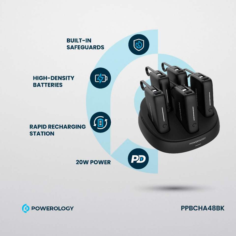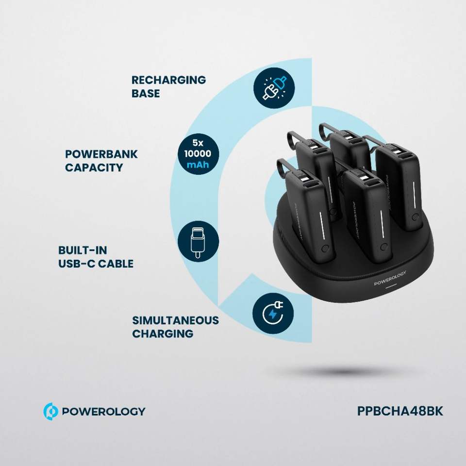 Powerology 5 10000mAh Ultra-Slim Power Station 20W Fast Charging Waterproof with Magnetic Wireless Charging Cable Included