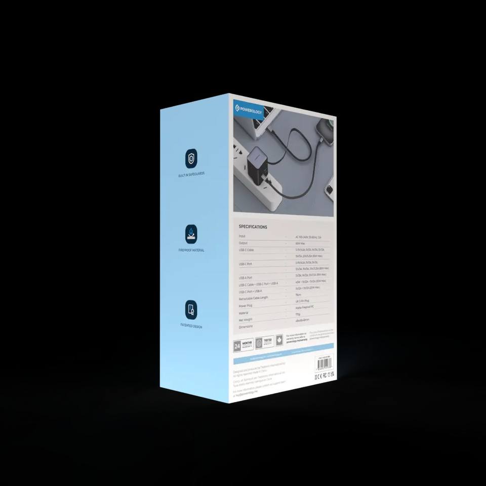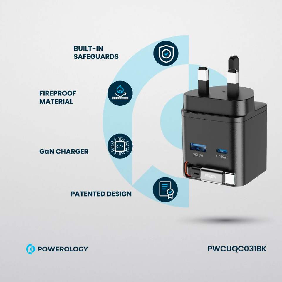 Powerology Dual Port Retractable GaN Charger