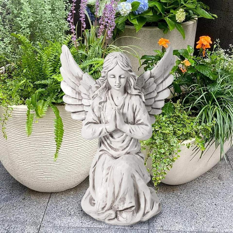 Praying Angel Garden Statue Outdoor Kneeling Angel Figurine Resin Sculpture G-Angel Model Qinzhou Brand 2.14 Lbs Patio Ornaments