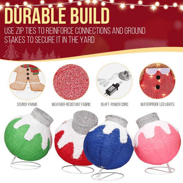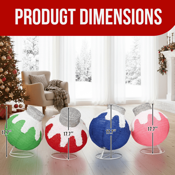 Pre-Lit 320 Multi-Color LED Lights Set of 4 Lighted Christmas Ball Ornaments for Outdoor Xmas Decorations