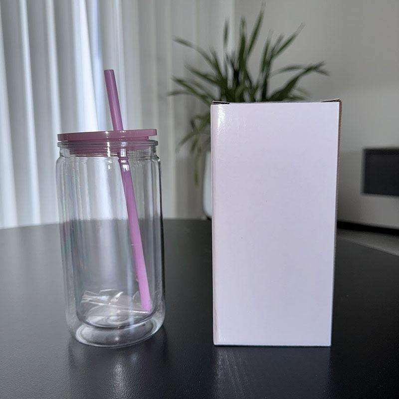 Pre Drilled 16oz Acrylic Plastic Sports Snow Globe Can Cup with Colored Lid for Camping Vinyl and UV DTF Wraps Mixed Colors