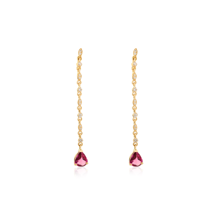 Precious Gemstone Natural Pear Cut Ruby & Diamond 18K Solid Yellow Gold Long Dangling Earring For Women Anniversary Gift Jewelry