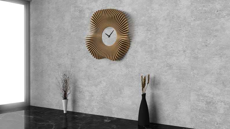 Precise Laser-Cut Parametric Wavy Wooden Wall Decor 64 Clock Design CNC Digital Files Art Deco Birthday Hanging Craft Wooden