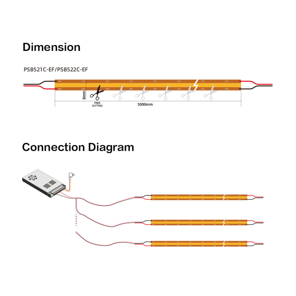 Precision-Engineered COB Strip Lights PSB521C-EF/PSB522C-EF IP20 Landscape Lighting Any-Point Cutting Millimeter-Accurate Custom