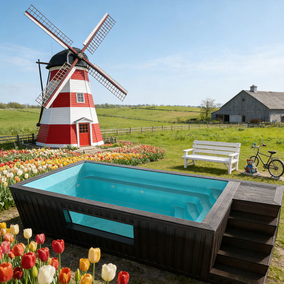 Prefabricated Above-Ground Container Fiberglass Pool with Waterfall Leisure, Easy Setup for Private Garden pool
