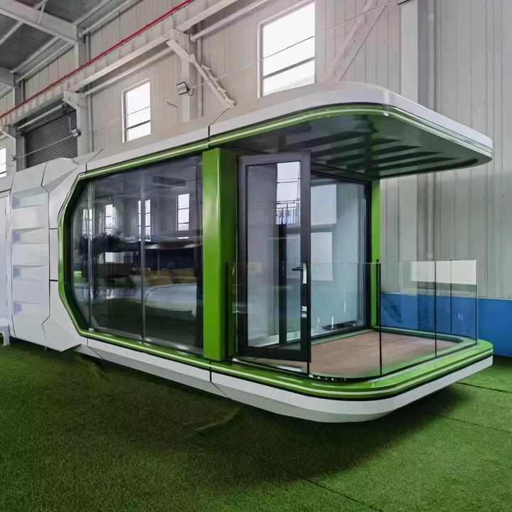 Prefabricated Portable Prefab Galvanized Steel Frame Aluminum Alloy Veneer Space Capsule House with Kitchen and Door Lock