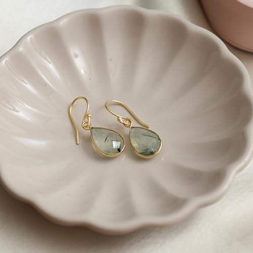 Prehnite Wire-Wrapped Hoop Earrings Gold-Plated 15x10mm Pear Bezel Dangle Natural Gemstone Jewelry