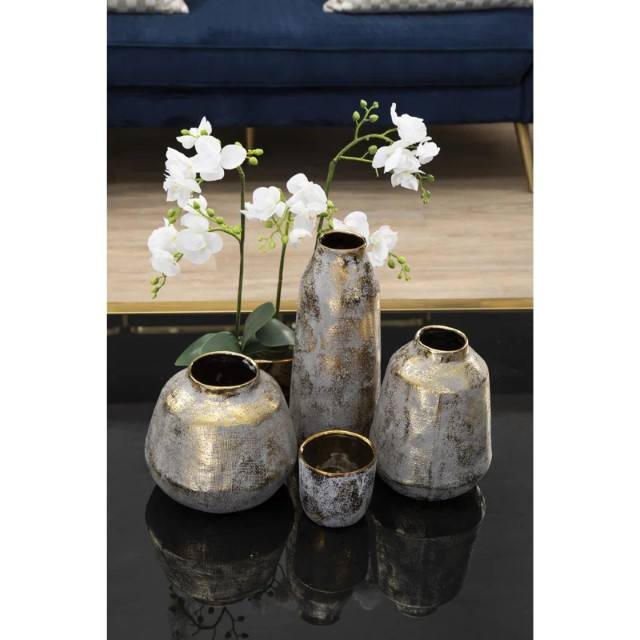 Premier Housewares Orvena Grey and Gold Ceramic Vase Large Decorative Flower Holder for Living Room Table Modern Home Decor