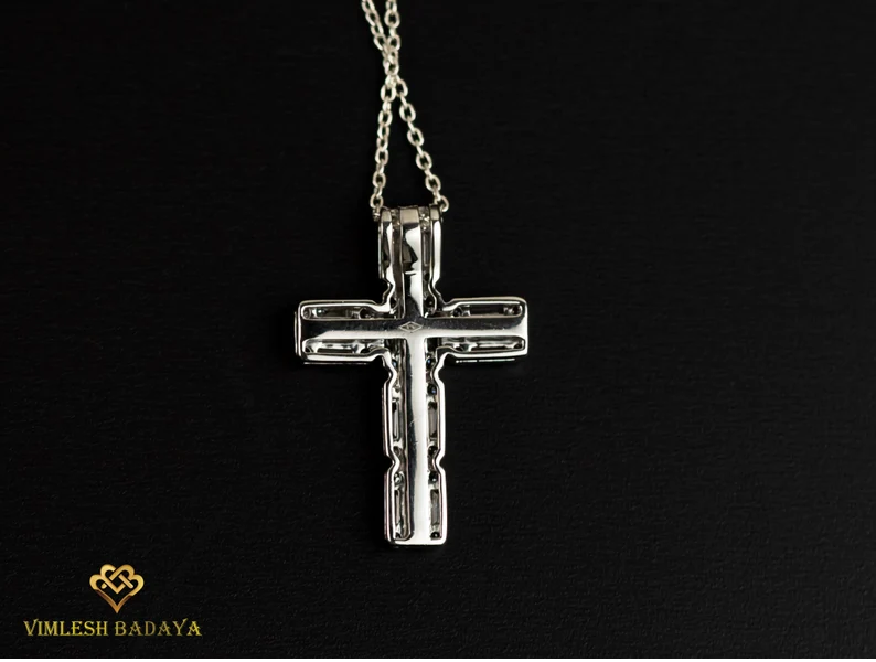 Premium 1 TCW IGI Certified Natural Diamond Cross Pendant 14K Solid Gold & Princess Cut Jesus Crucifix Illusion Design