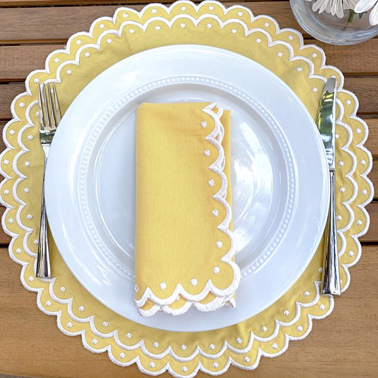Premium 100% Cotton Scalloped Edge Kitchen Napkins Reusable Soft High Quality Fabric Table Decor Gift Set Wholesale Bulk