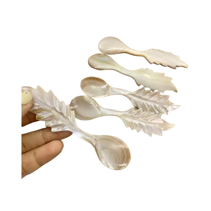 Premium 10cm Mother of Pearl Dessert Spoon with Unique Leaf-Shaped Handle Handcrafted Mother of Pearl Spoon Wholesale Handicraft