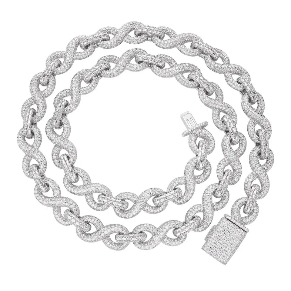 Premium 12mm infinity link chain rhodium 14k 18k gold plated cz moissanite hip hop necklace in wholesale
