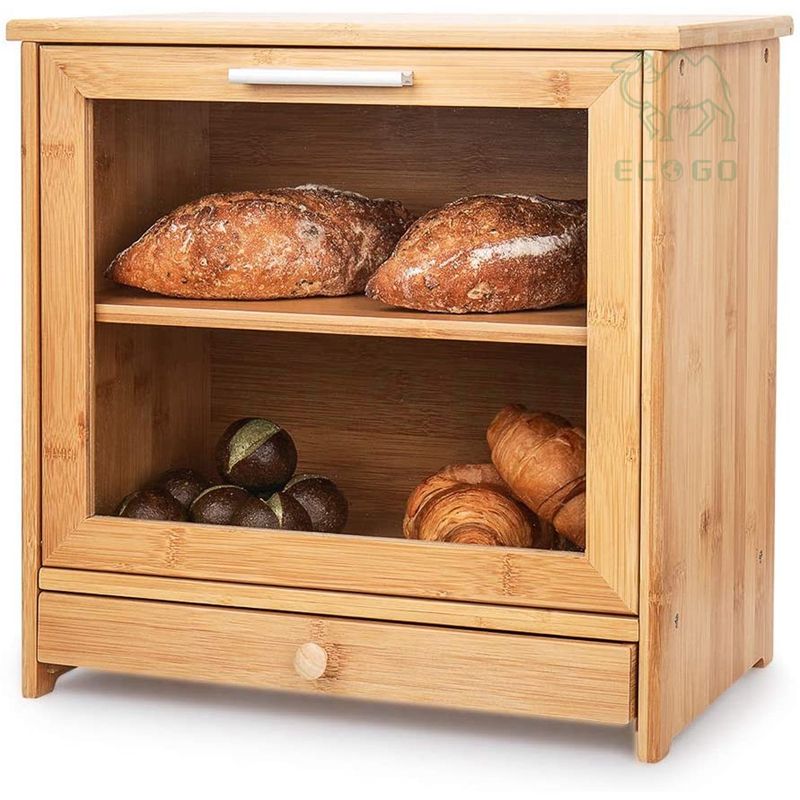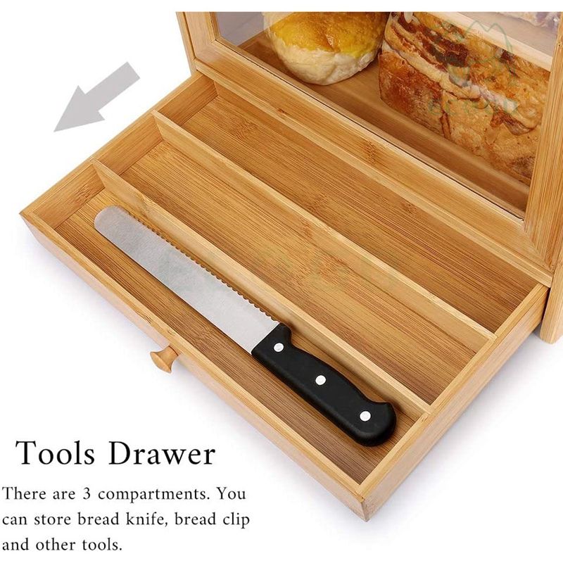 Premium 2-Tier Bamboo Bread Box With Transparent Window Extra Large Size Bread Bin Self Assembly Storage Bin for Kitchen