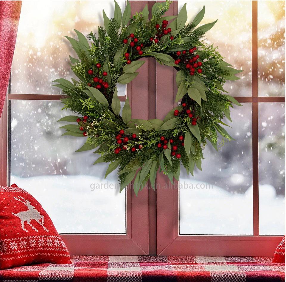 Product name:24in Christmas Wreath with Lush Green Leaves & Red Berries