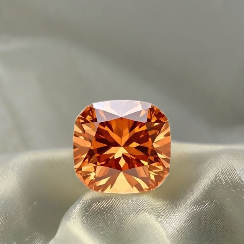 Premium 3 Carat Lab Grown Orange Diamond Cushion Shape | D Color VVS1 9x9mm Loose Gem with Color Play/Fire for Jewelry