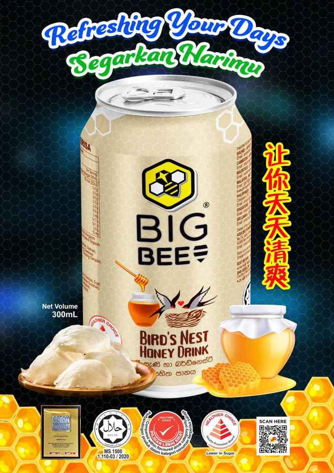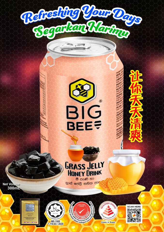 Premium 300ml Big Bee Grass Jelly Honey Non-Carbonated Filtered Low-Carb Natural Halal Sport Bulk Box