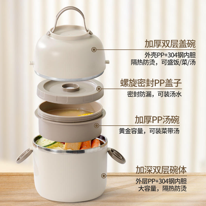 Premium 304 Stainless Steel Insulated Lunch Box With PP Lid Bento Set For Office Workers