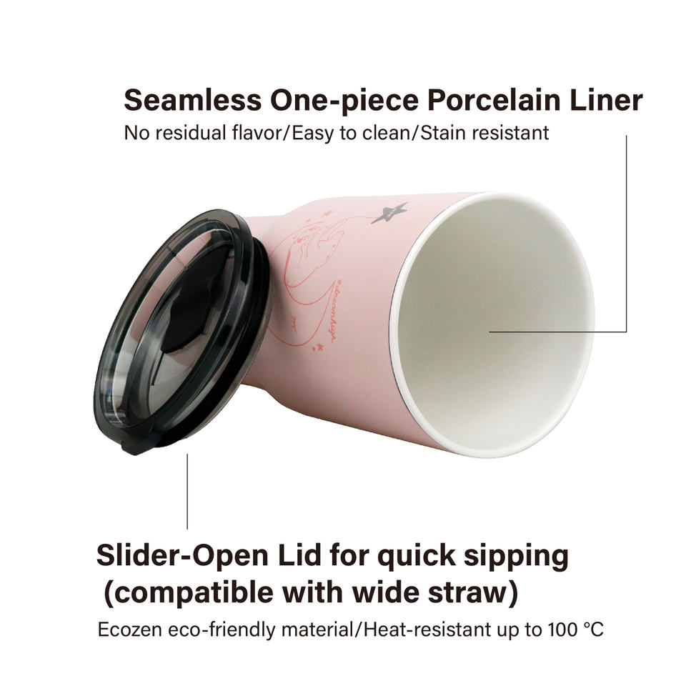 Premium 30Oz/900Ml Double Wall Vacuum Insulated Bubble Tea Tumbler with Porcelain Liner Straw 8-10hrs Thermal Insulation