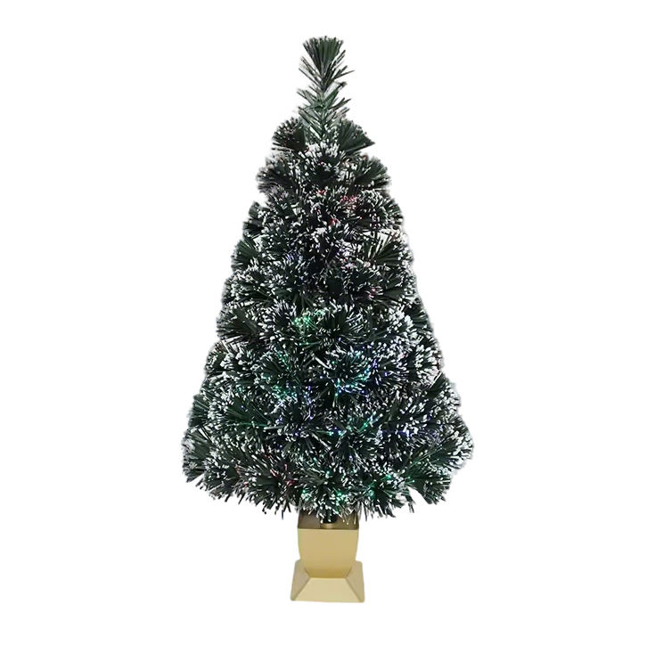 Premium 32-Inch Artificial Snow Edged PVC Green Christmas Fiber Optic Tree for Home Office Holiday Party Decor