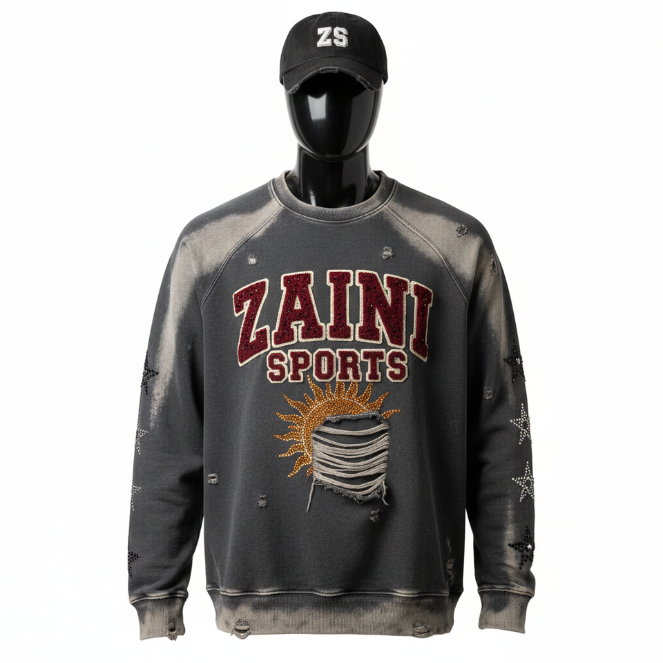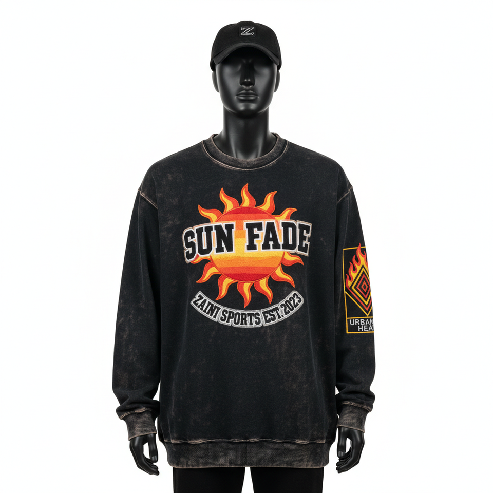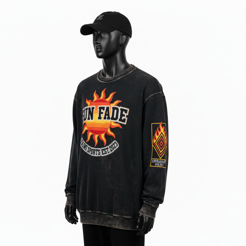 Premium 330GSM Sun Fade Sweatshirt Vintage Washed Cotton Fleece Black Orange Graphic Custom Logo Screen Print Basics Sweatshirts