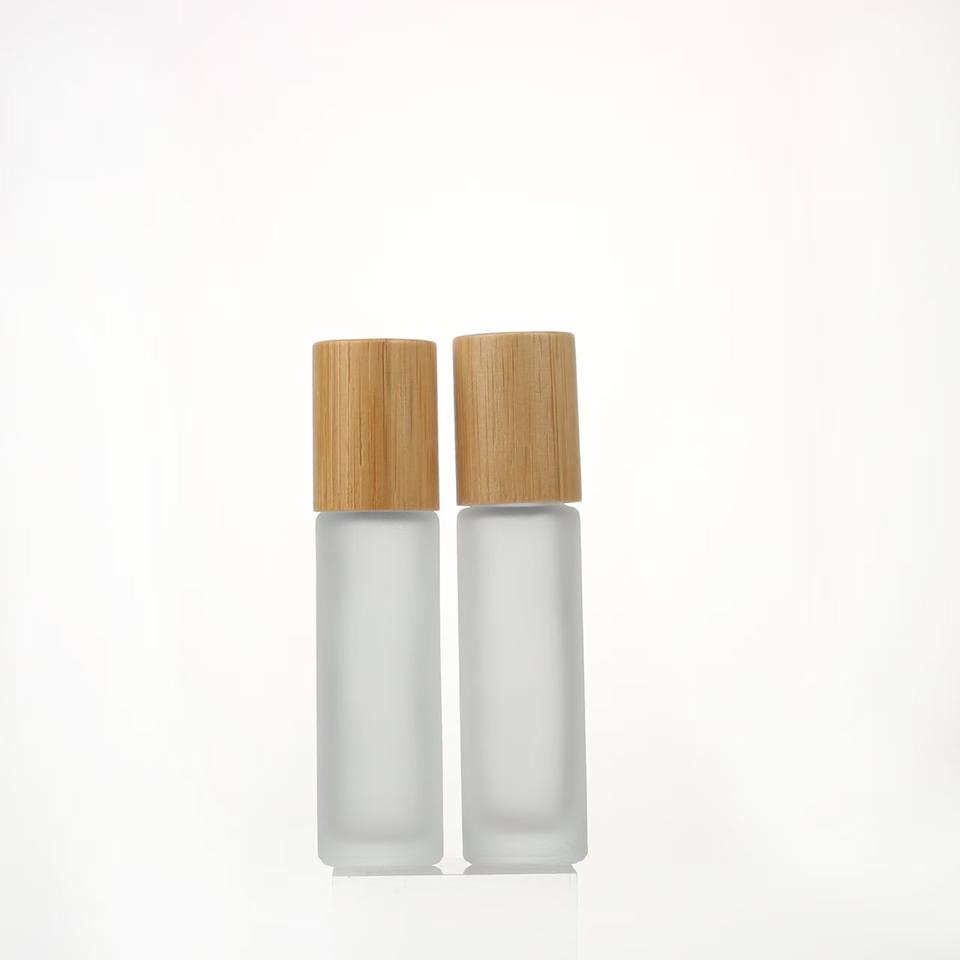 Premium 5ml/10ml/15ml Glass Roll On Bottle with Wooden Cap - Custom Silkscreen Logo - Essential Oil Perfume Container