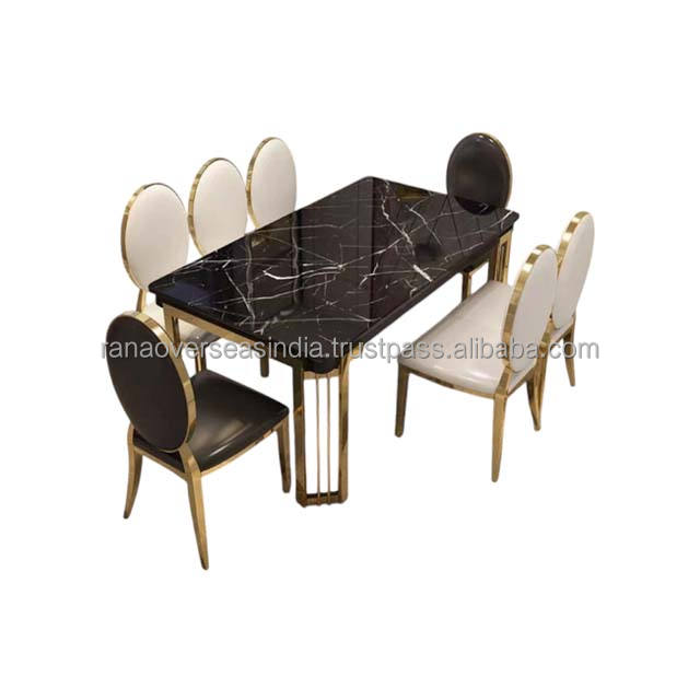 Premium 7 Seater Dining Table Set With Expandable Marble Top Steel Frame and Upholstered Seating Elegant Touch for Any Home