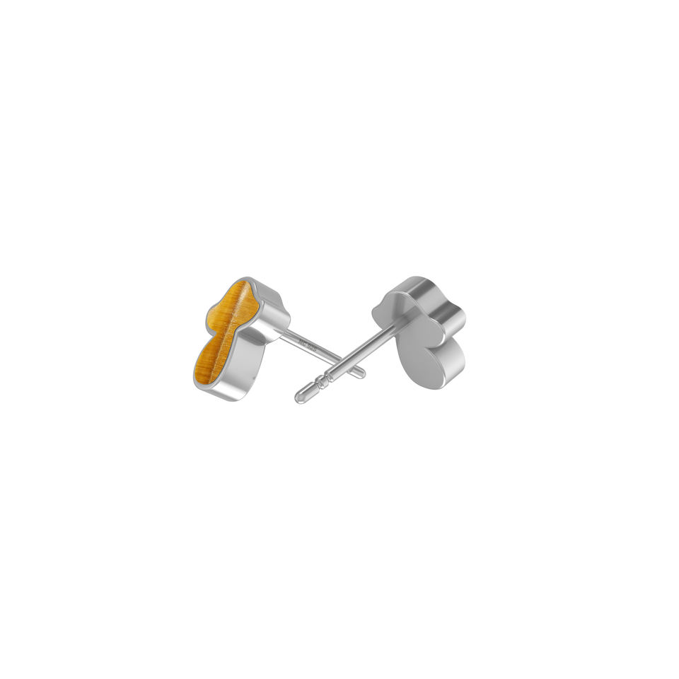 Premium 925 Silver Jewelry Gemstone Tiger Eye Mushroom Shape Butterfly Lock Stud Earring Bezel Setting Pack of 3 Pairs