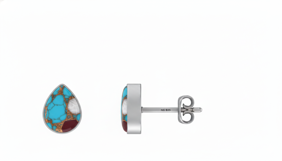 Premium 925 Silver Spiny Oyster Turquoise Gemstone Pear Marquise Oval Cab Butterfly Lock Stud Earrings Bezel Classic Party Gift