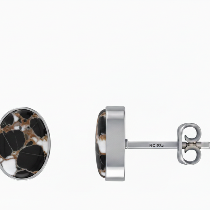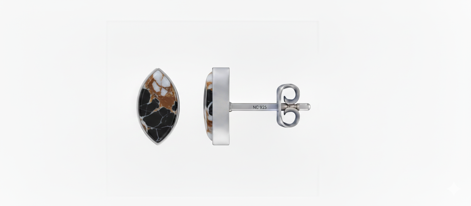 Premium Classic 925 Silver White Buffalo Gemstone Pear Marquise Oval Cab Butterfly Lock Stud Earrings Bezel Setting 3-Piece Gift