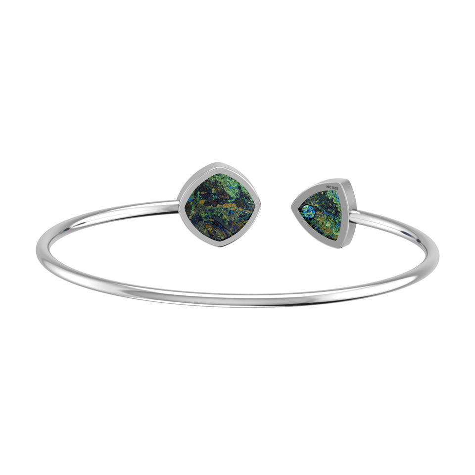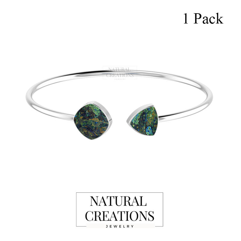 Premium 925 Sterling Silver Adjustable Bracelet Azurite Malachite Semi Trallion And Cushion Cab Twister Bracelet Gift Women