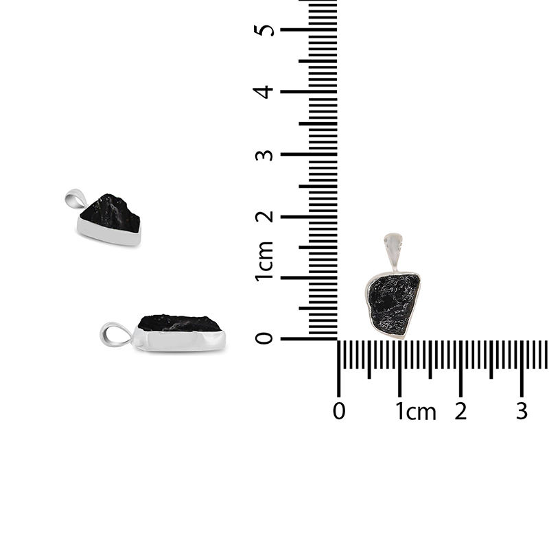 Premium 925 Sterling Silver Fine Pendant & Charm Black Tourmaline Gemstone Rough Cut with Spring Lock Bezel Setting Pack Of 12