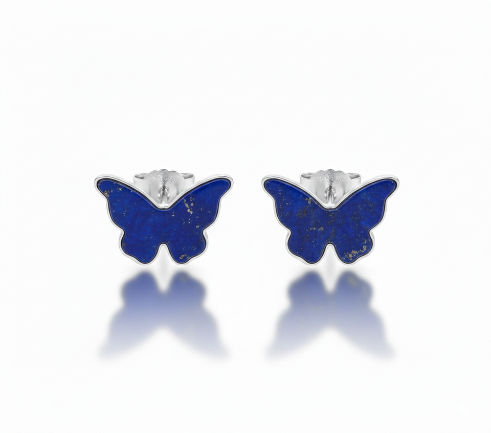 Premium 925 Sterling Silver Lapis Lazuli Butterfly Shape Stud Earrings Bezel Setting Cute Trendy Wedding Party Gift