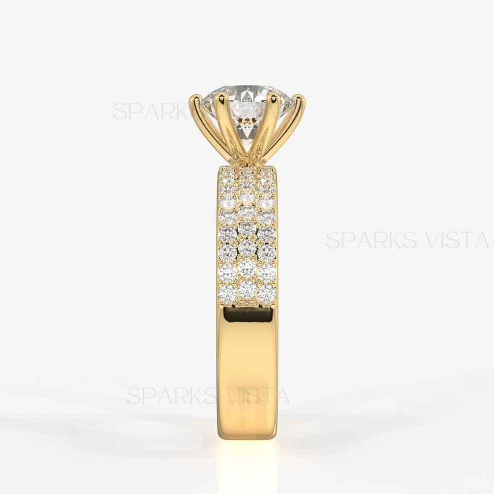 Premium 925 Sterling Silver Round Cut Moissanite Engagement Ring with Pave Set Side Stones for Women Anniversary Fine Jewelry