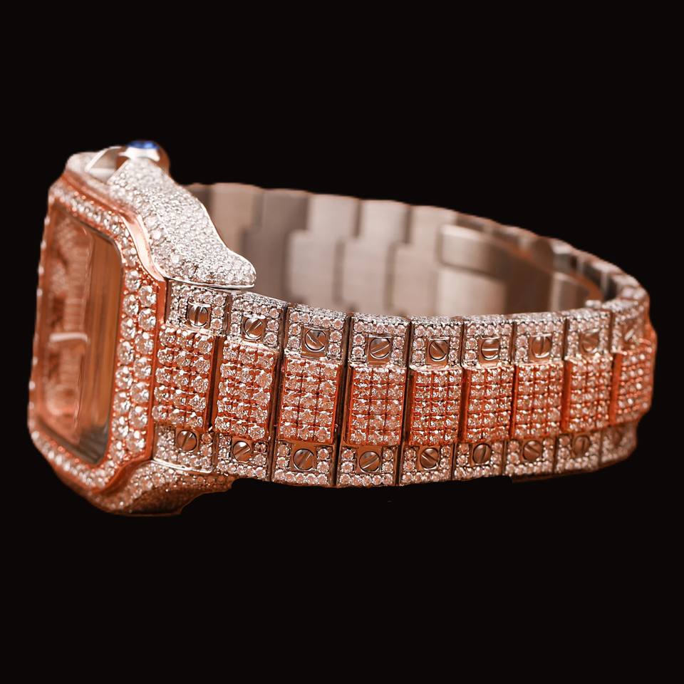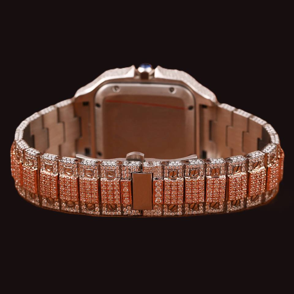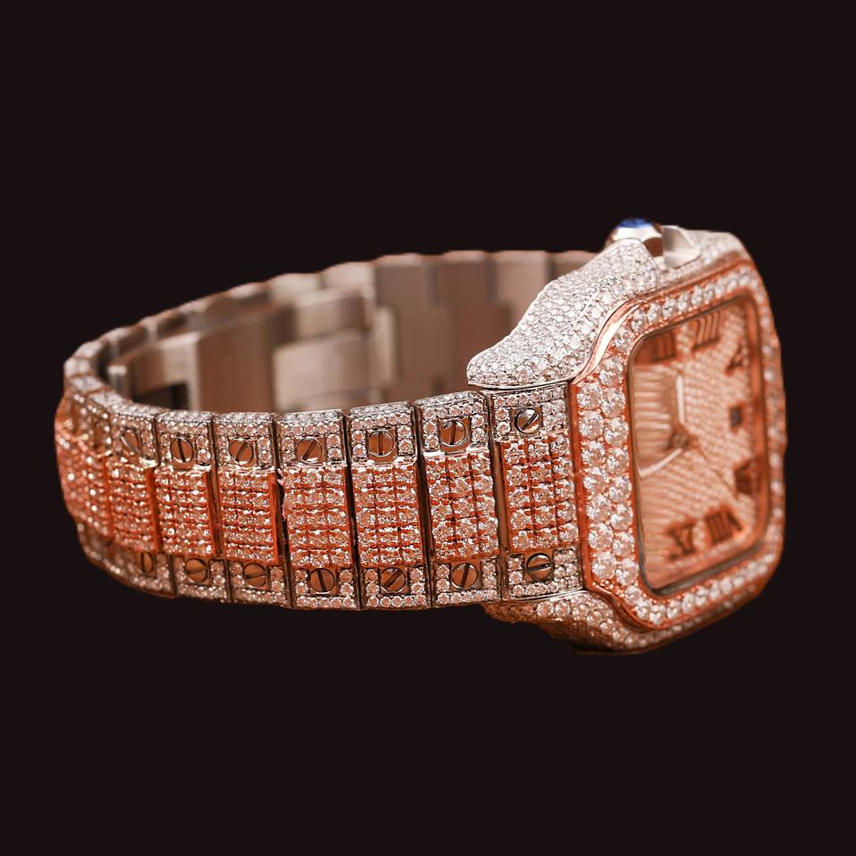 Premium 925 Sterling Silver Round Moissanite Diamond Quartz Movement Mechanical Fully Iced Out Roman Numerals Hip Hop Watch