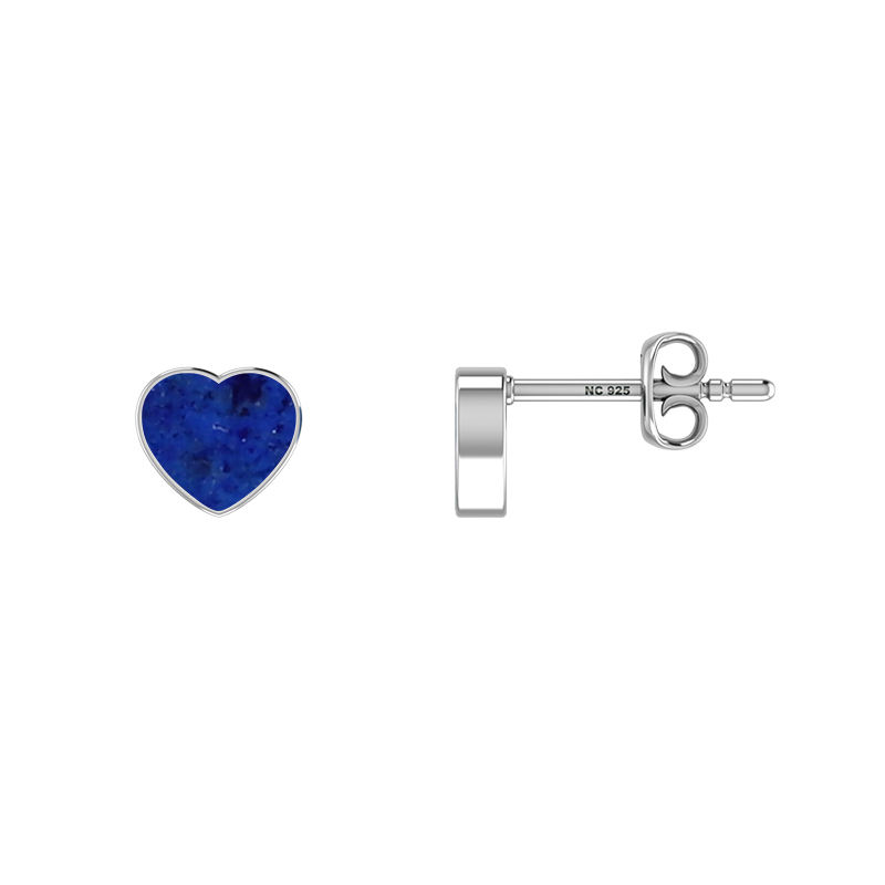 Premium 925 Sterling Silver Seawater Lapis Lazuli Heart Shape Butterfly Lock Stud Earrings Bezel Setting Trendy Anniversary Gift