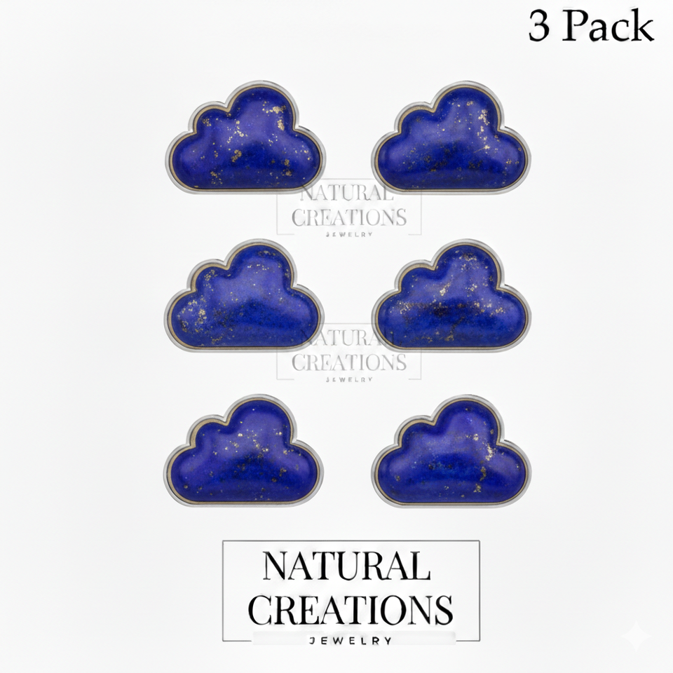 Premium High Finish 925 Sterling Silver Seawater Pearl Lapis Lazuli Cloud Shape Stud Earrings Bezel Setting Trendy 3-Piece