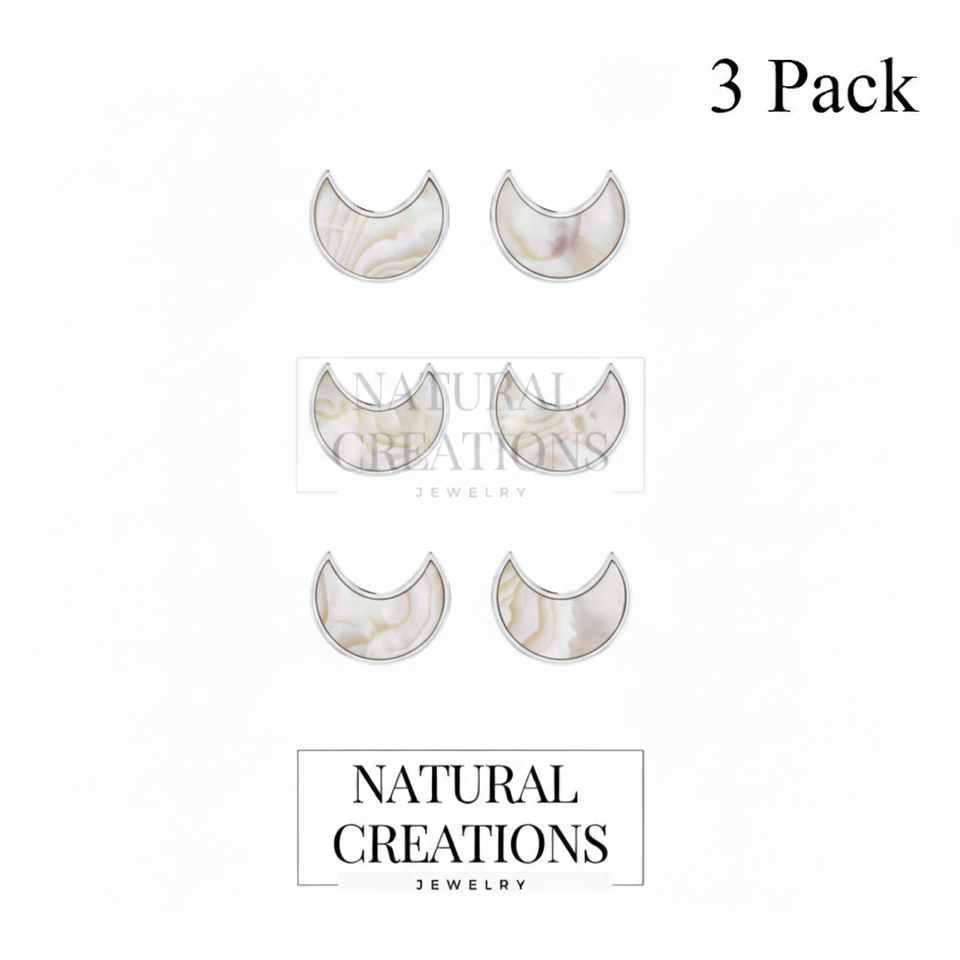 Premium 925 Sterling Silver Seawater Pearl Moon Shape Stud Earrings Bezel Setting 7MM High Finish Trendy Wedding Party Gift