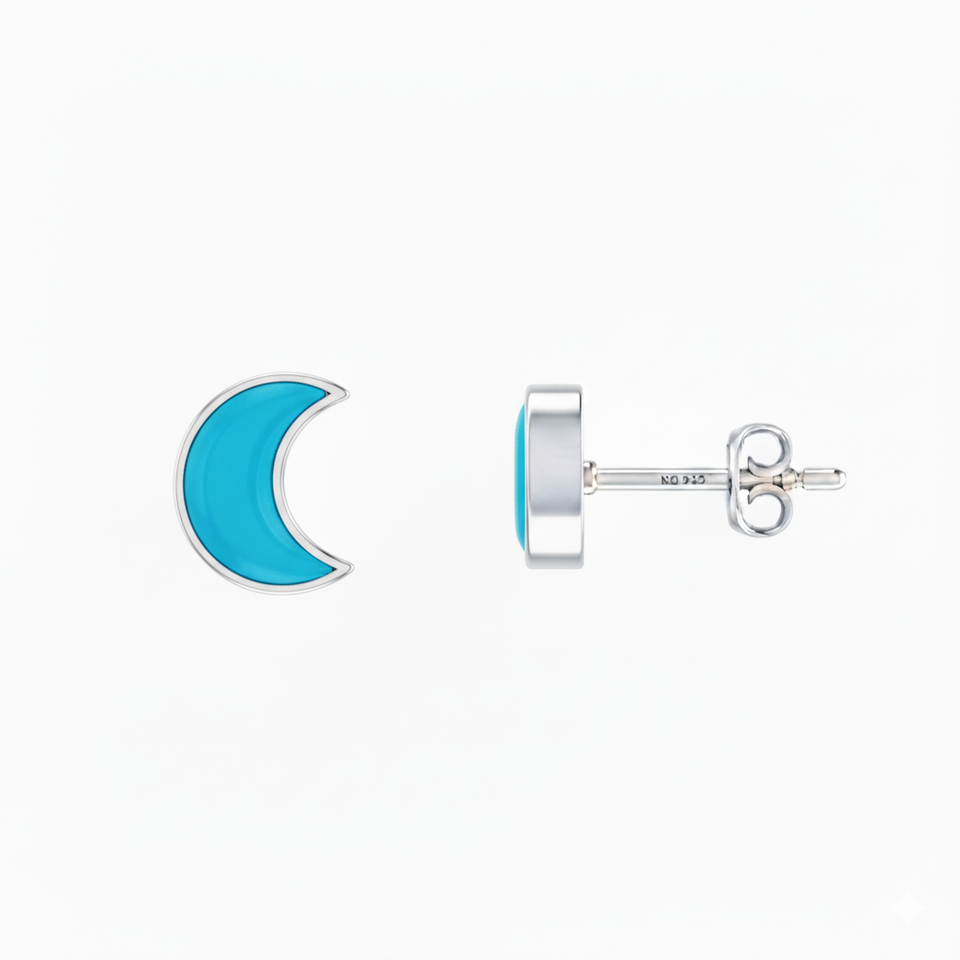 Premium High Finish 925 Sterling Silver Seawater Pearl Turquoise Moon Shape Stud Earrings Bezel Setting 7MM Trendy Wedding Party