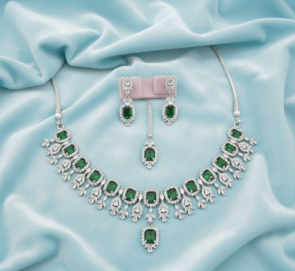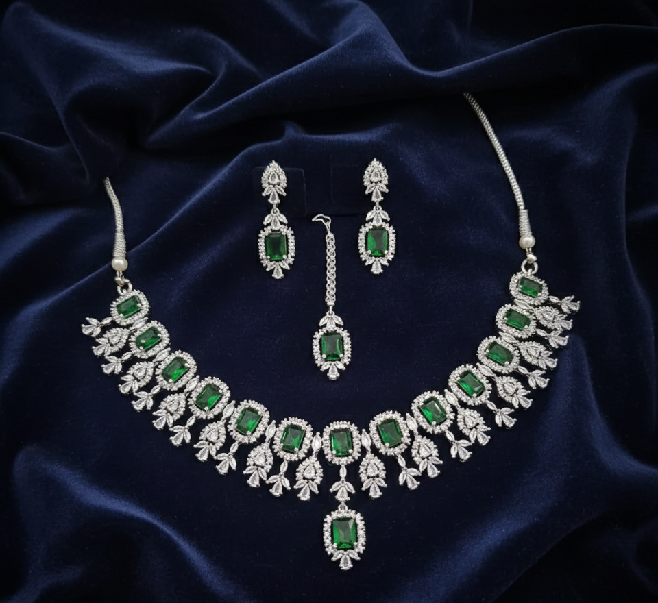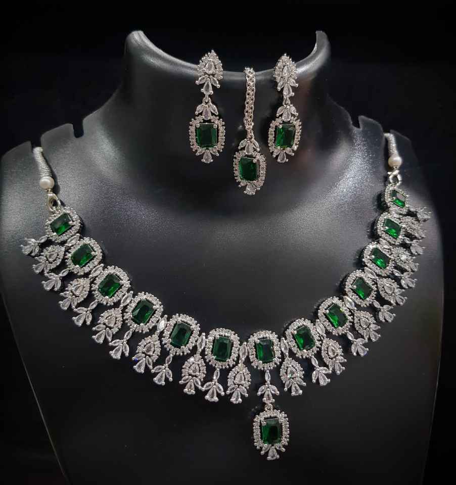 Premium AD Bridal Necklace Earrings Set for Women Wedding Party Traditional Jewellery Elegant Bridal Look High Quality