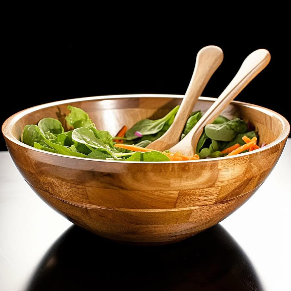 Premium Acacia Wood Salad Bowl Servers Set Sustainable Large Wooden Dining Bowl Spoon Modern Farmhouse for Home Kitchen Use