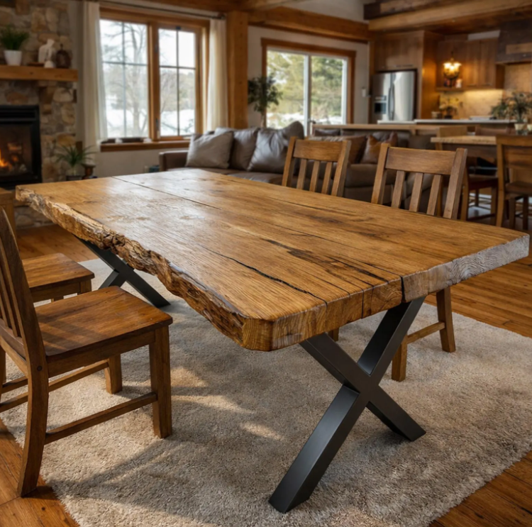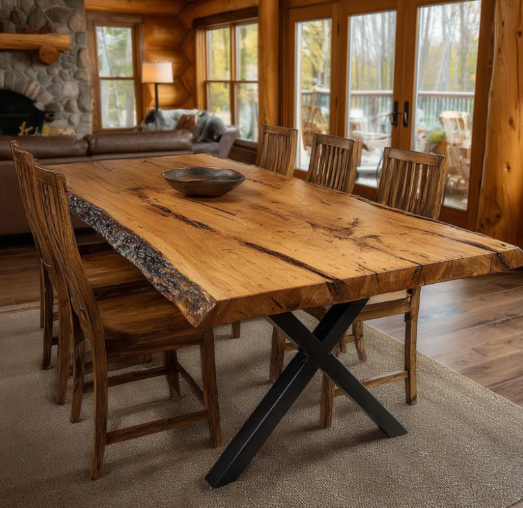 Premium Acacia Wood Solid Dining Table With Strong Metal Legs Live Edge Wooden Furniture For Modern Home Restaurant Farmhouse