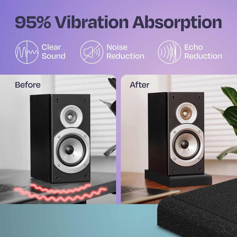Premium Acoustic Foam Isolation Pads (Black) for 3-4.5 Inch Studio Monitors Polyethylene Material 1.4 Inches Thickness