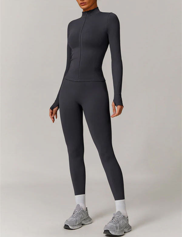 Product Name:Zip Front Long Sleeve Top And Legging Gym Set