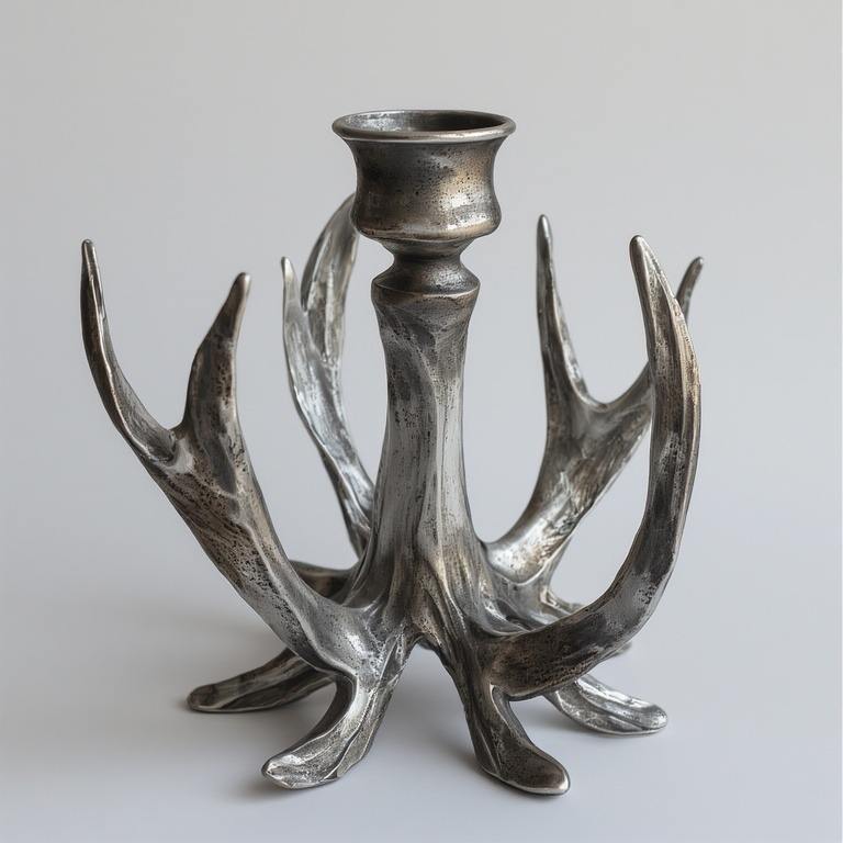 Premium Aluminium Horn Candle Holder With Rustic Hammered Patina Artisan Handmade Offering Decorative Accent For Interiors