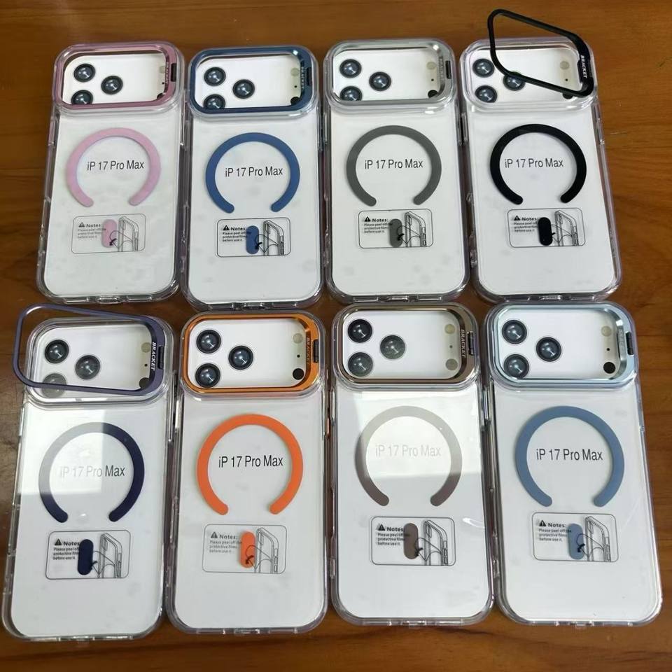 Premium Aluminum Alloy Camera Lens Bracket Stand Clear Acrylic Magnetic Shockproof Phone Case Phone Grip for 17 Pro Max