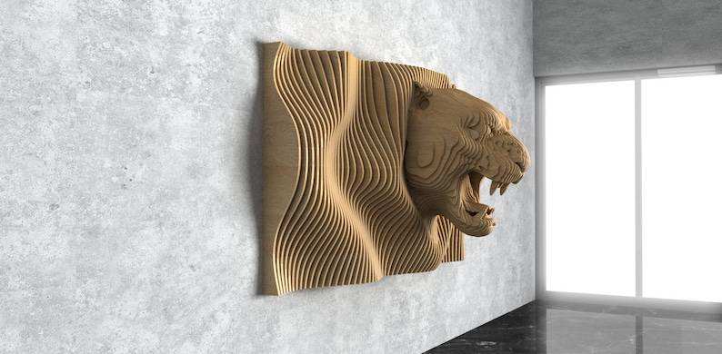 Premium Art Deco Design Wavy Wooden Wall Decor 59 Jaguar Model CNC Files Digital Patterns for Birthday Use Parametric Project