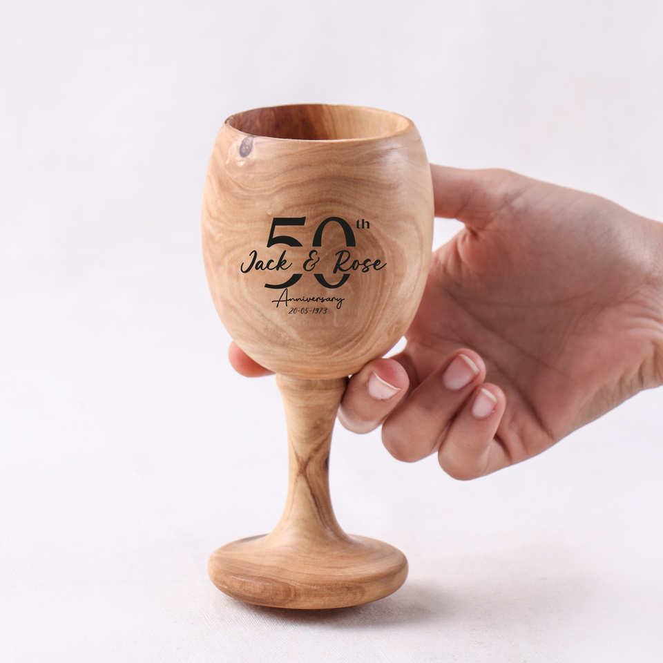 Premium ArtisRaw Handcrafted Classic Wooden Goblet Handmade Mediterranean Olive Wood Durable Eco-Friendly Wine Glass for