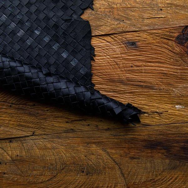 Premium Artisan Woven Leather Dark Brown Handmade Cowhide Customizable 1 to 12 Sqft Premium Leather Product.
