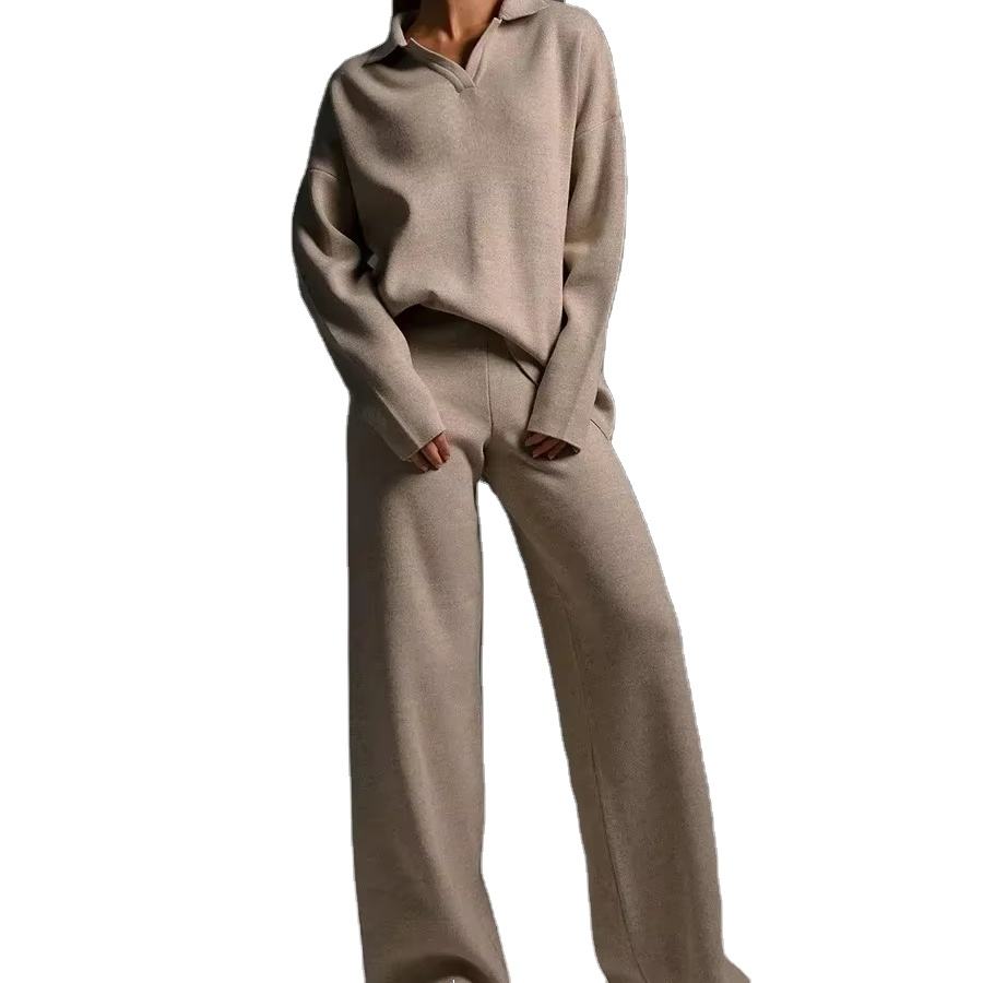 Premium Autumn Solid Halter Women Regular Pullover Sweater Outerwear Shawl Jacket Wide Leg Pants